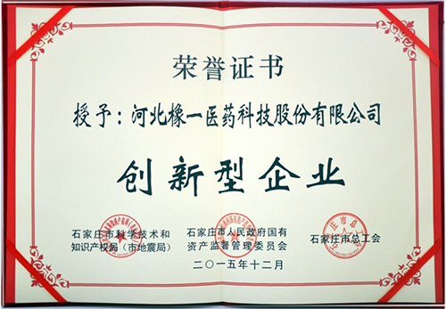 近日,河北橡一医药科技股份有限公司被石家庄市科学技术和知识产权局、石家庄市人民政府国有资产监督管理委员会、石家庄市总工会联合授予“创新型企业”荣誉称号。