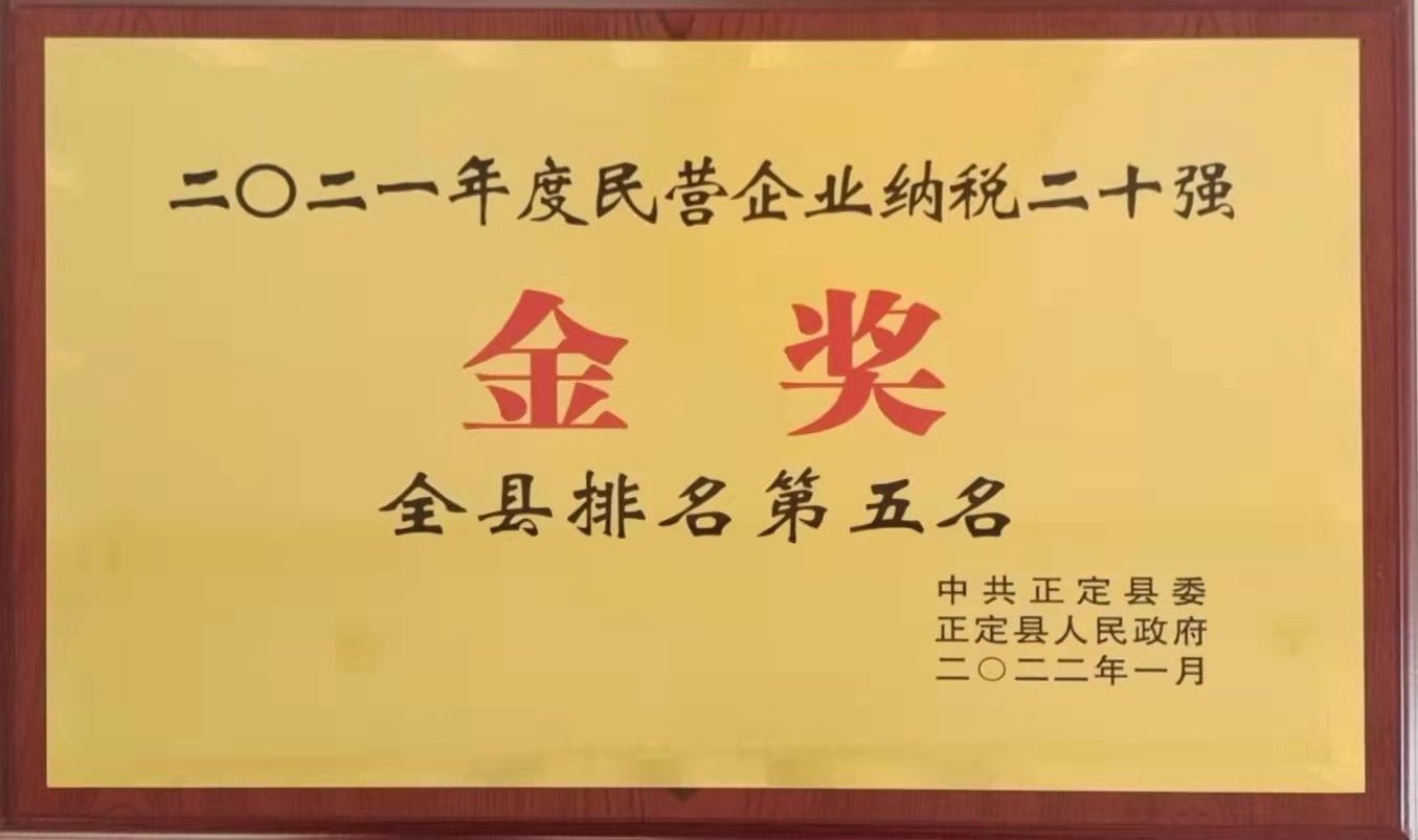 橡一科技荣获二〇二一年度正定县民营企业纳税二十强金奖