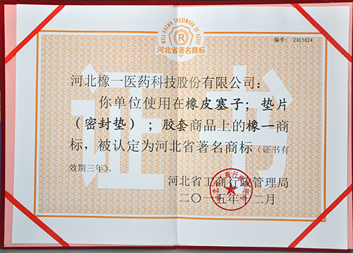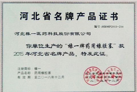 近日,经河北省政府批准,河北橡一医药科技股份有限公司的国家专利产品——橡一牌药用橡胶塞荣获2015年度“河北省名牌产品”荣誉称号。这是橡一科技继“河北省著名商标”之后获得的又一殊荣。橡一科技通过产品技术创新,不断加大自主品牌建设,在深入贯彻省委、省政